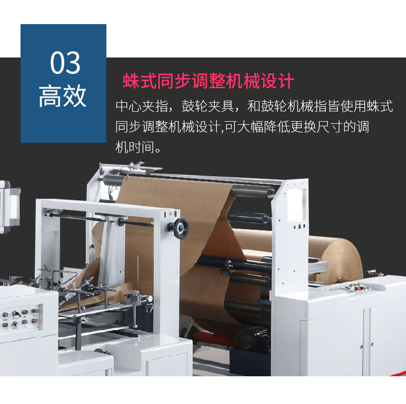 可調(diào)式卷簡方底紙袋機(jī),它具有速度央、生產(chǎn)效益高、調(diào)節(jié)范圍大的優(yōu)點(diǎn)。此設(shè)備是將原色或印刷好的卷筒紙由本機(jī)一次完成側(cè)邊上膠,折疊成微、紙筒切斷、底部涂膠、袋底成型、出袋,整機(jī)由計(jì)算機(jī)中央控制系統(tǒng)控制、觸摸屏顯示,伺服電機(jī)控制紙袋長短,可生產(chǎn)多種規(guī)格紙袋,是統(tǒng)袋生產(chǎn)加工的首選設(shè)備。
